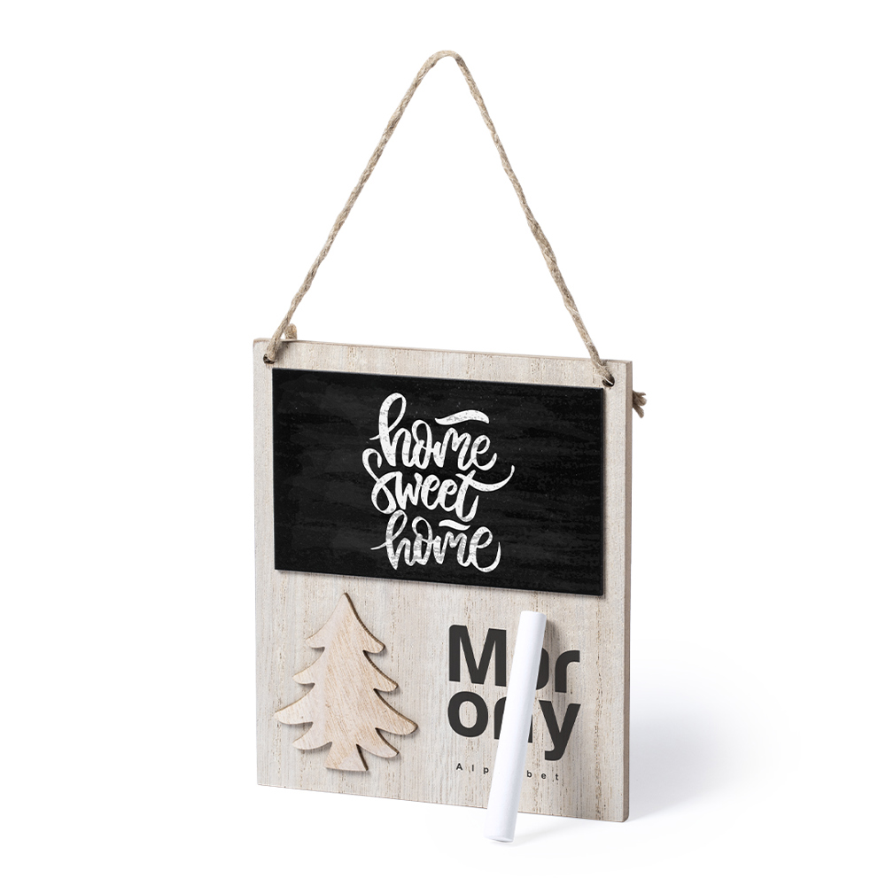 Natuurlijn kerstornament, met krijtbord en origineel stansmotief in kerstboomdesign, gemaakt van zacht aanvoelend hout. Magnetische achterkant en jute koord om op te hangen. Inclusief schrijfkrijt. Gepresenteerd in een individueel zakje.