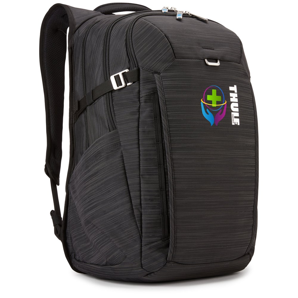De Thule Construct Backpack 28L is een eigentijdse en praktische rugzak met veel opbergruimte voor het werk of op reis. Bescherm een laptop van maximaal 15,6" en een tablet van maximaal 10,5" in een apart gevoerd vak met zachte binnenvoering. Bewaar kleine spullen of een laptop kabels in het zijvak met ritssluiting en een waterfles in het uitbreidbare open zijvak. Naast een uitstekende bescherming, wordt de backpack haarscherp gepersonaliseerd met uw logo.