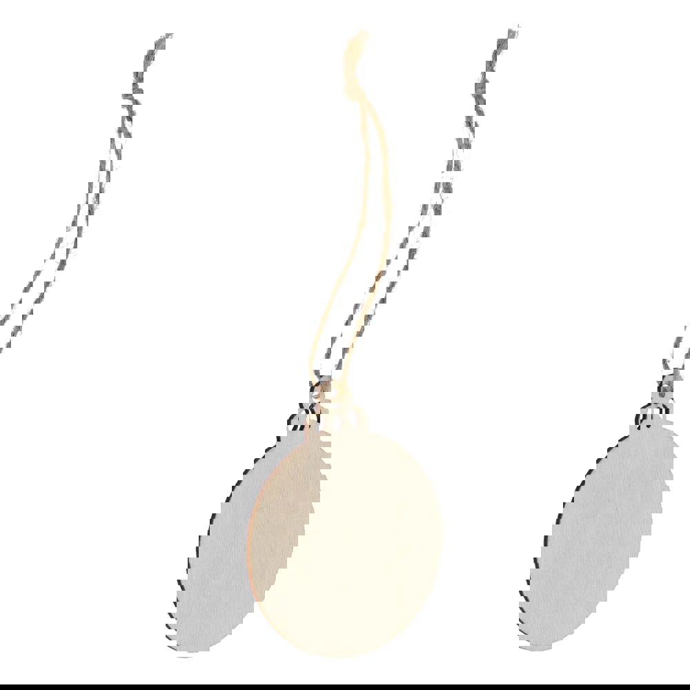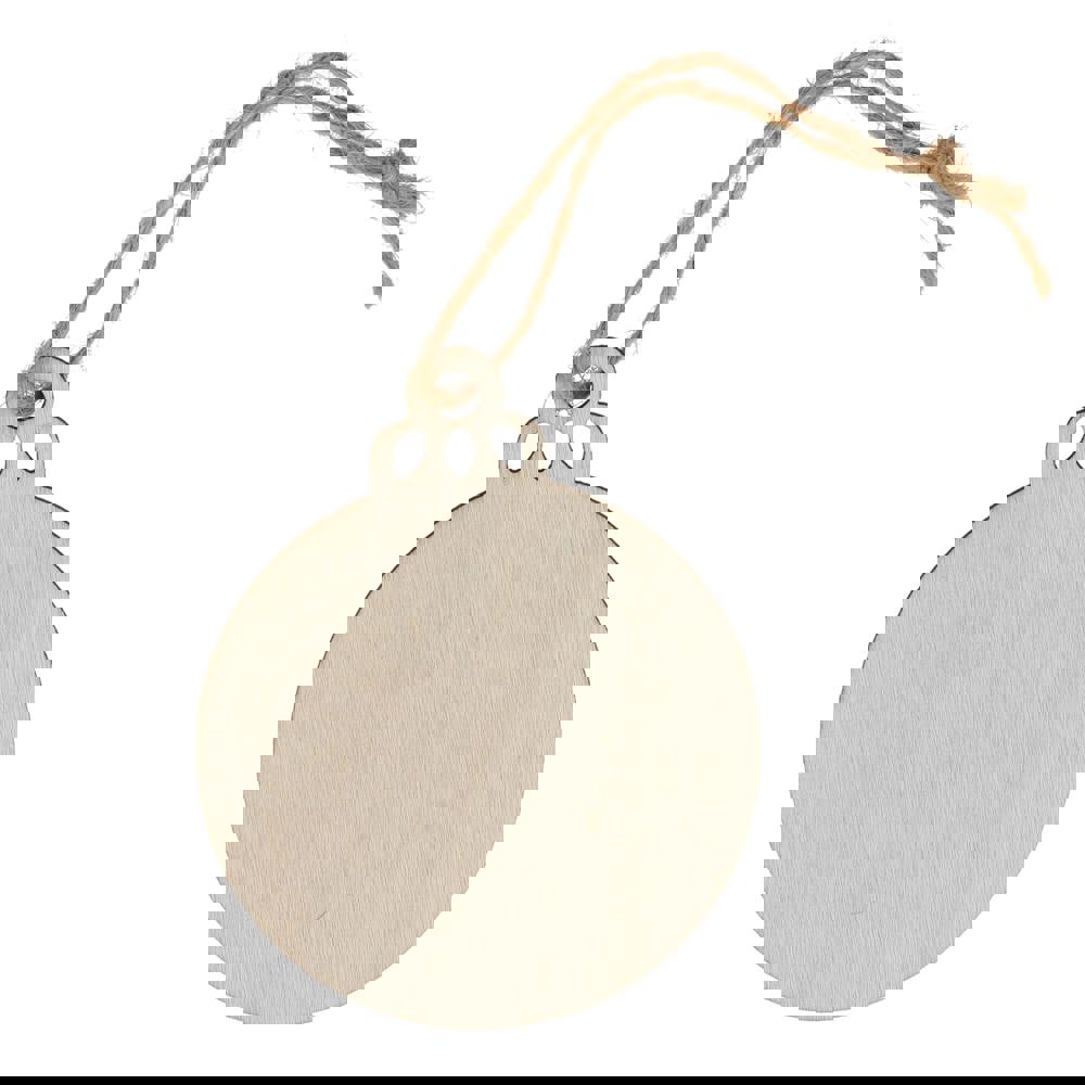 Vier het seizoen met dit charmante houten ornament in de vorm van een kerstbal. Dankzij de klassieke vorm en het ruime bedrukkingsoppervlak is het perfect om een uniek aandenken aan de feestdagen te creëren en cadeau te geven. Ideaal voor het versieren van kerstbomen, kransen of feestelijke displays.