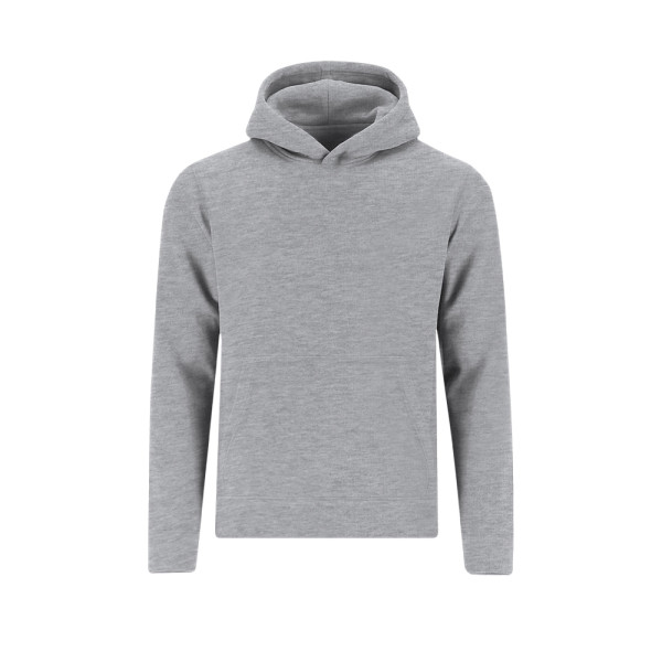 Unisex kinderhoodie met gevoerde capuchon in bijpassende dubbele stof. Gemaakt van katoen en polyester in zacht geruwd fleece 280 g/m. Voorzien van kangoeroezak, verstevigd nektape en manchetten en tailleband in 1x1 ribtricot met elastaan voor betere pasvorm en comfort.