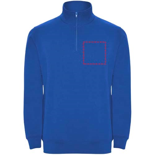 Sweatshirt met halve rits in dezelfde kleur en staande kraag. Binnenkant van de kraag in dezelfde kleur. Versterkte naadafdekkingen aan de binnenzijde van de kraag. Manchetten en tailleband in ribboord 1x1. Het model is 185 cm en draagt maat M.