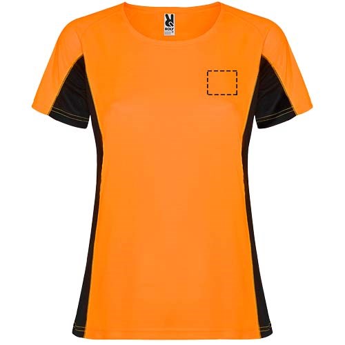 Technische en ademende stof. Een combinatie van twee polyesterstoffen: Hoofdstof van birdseye-stof, zijpanelen en binnenmouw van micro-geperforeerde stof. Ronde hals met binnenin versterkte bedekte naden. Verwijderbaar label.