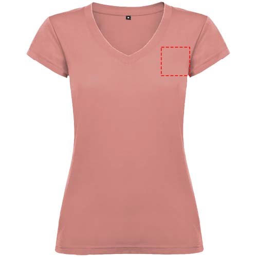 T-shirt met korte mouwen en V-hals voor dames, met 1x1 geribbelde afwerkingen. Slim-fit met zijnaden. Verwijderbaar etiket. Het model is 174 cm en draagt maat S.