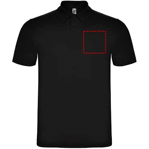 Poloshirt met korte mouwen, sluiting met drie knopen en 1x1 geribde kraag. Versterkte bedekte naden in de kraag. Verwijderbaar etiket. Het model is 190 cm en draagt maat L.