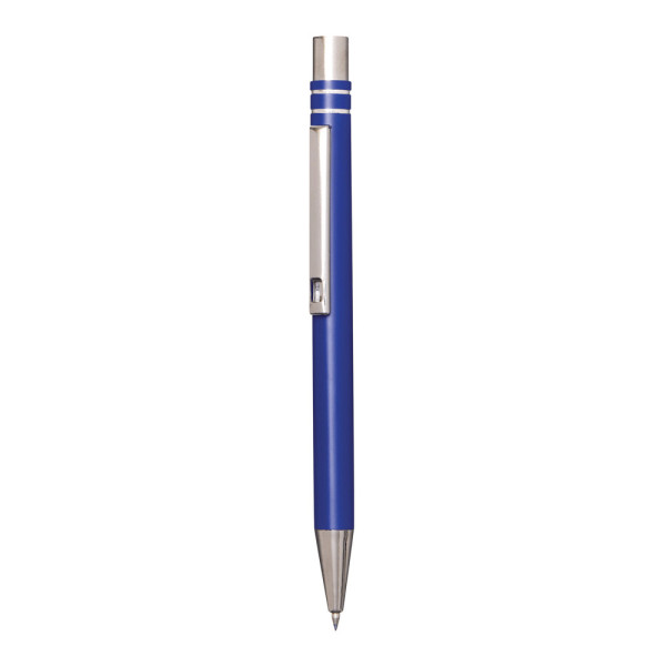 Aluminium gelbalpen ANNY: met matte aluminium behuizing, drukmechanisme, grote vulling met gel-inkt, schrijft in blauw.