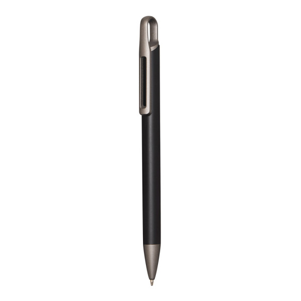 Aluminium balpen VIRAGIO: met matte aluminium behuizing, drukmechanisme, schrijft in blauw.