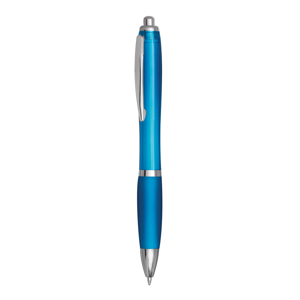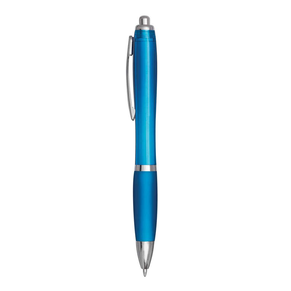Balpen SWAYRABS: met een getailleerde behuizing van gerecycled kunststof, rubberen gripzone, drukmechanisme, grote vulling, schrijft in blauw.