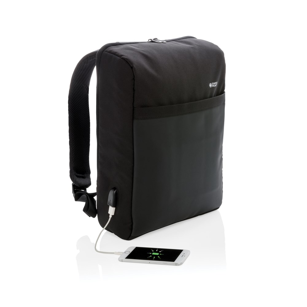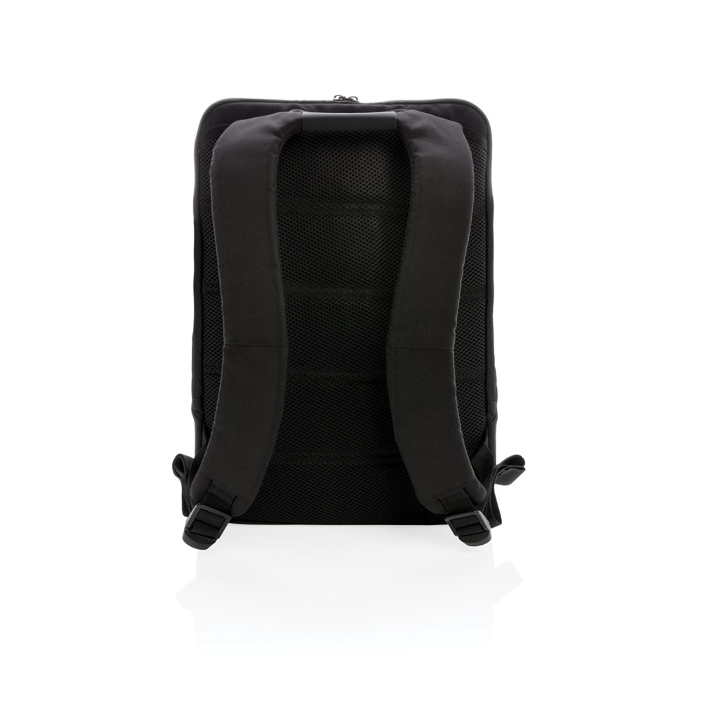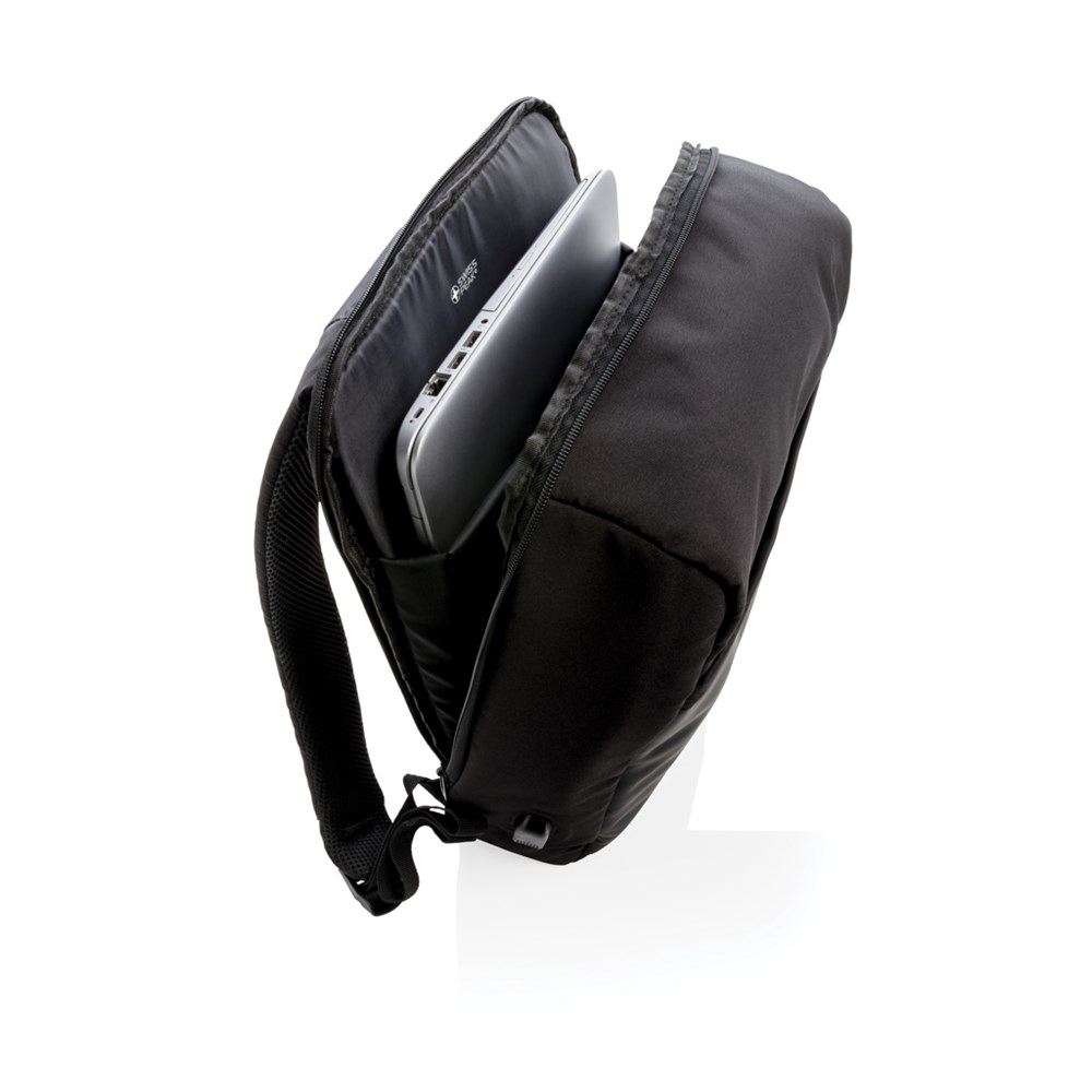 Al uw dagelijkse benodigdheden voor school of werk, comfortabel en veilig opgeborgen in deze minimalistische anti-diefstal rugzak. Met gewatteerd 15" laptop vak. Deze lichtgewicht en duurzame rugzak heeft een compacte minimalistische constructie. Met RFID-beschermde vakjes en USB-poort. PVC vrij.