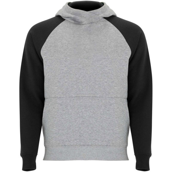 Tweekleurige unisex hoodie. Capuchon met gekruiste hals en metalen oogjes. Contrasterende binnenkant van de capuchon, trekkoord en raglanmouwen. Kangoeroezak. Manchetten en zoom van 1x1 ribgebreid elastaan. Verwijderbaar label.