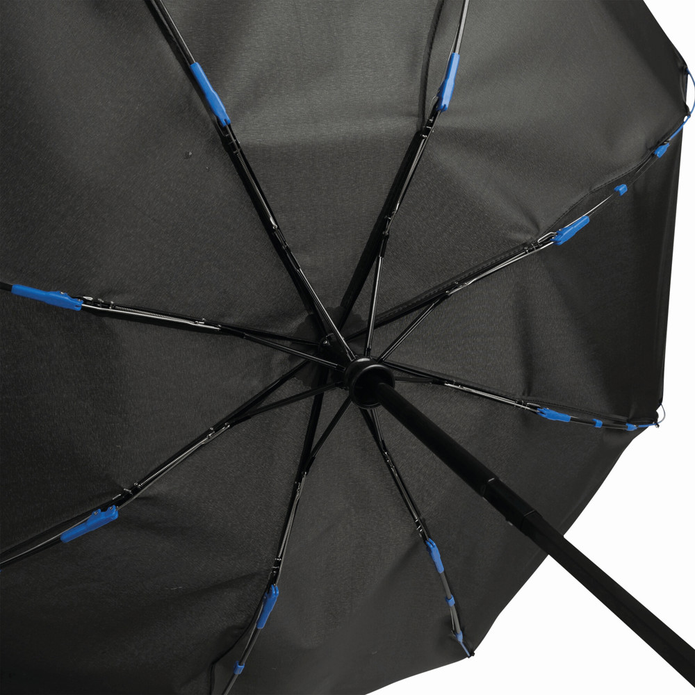 Stormvaste, automatisch te openen- en sluiten pocketparaplu STREETLIFE: stiksels in matching kleur met handvat, 3-delige metalen steel, met metaal-glasfiber baleinen, metalen tips, rubbercoated handvat met polslus, Polyester-pongee doek, sluitband met klittenband, sleeve met matching stiksels en klittenbandsluiting.