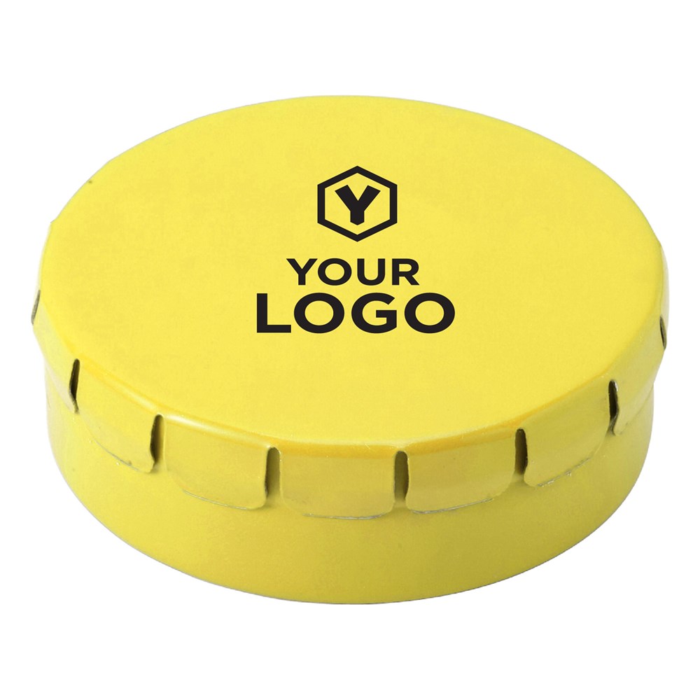 Metalen snoepblikje met 'click-clack' deksel, met ca. 40 suikervrije mintjes.meer