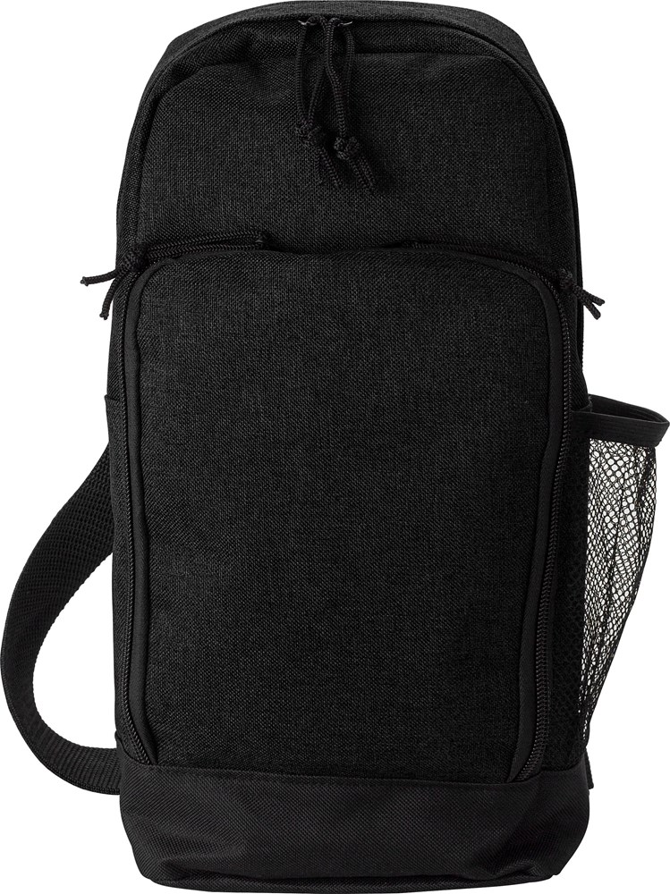 Polyester (600D) grote schoudertas met één verstelbare band. Eén groot compartiment, één voorvak met rits en één meshvak aan de zijkant.