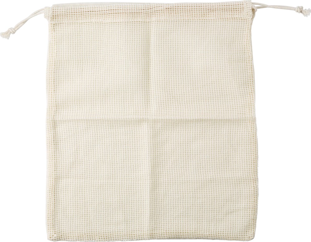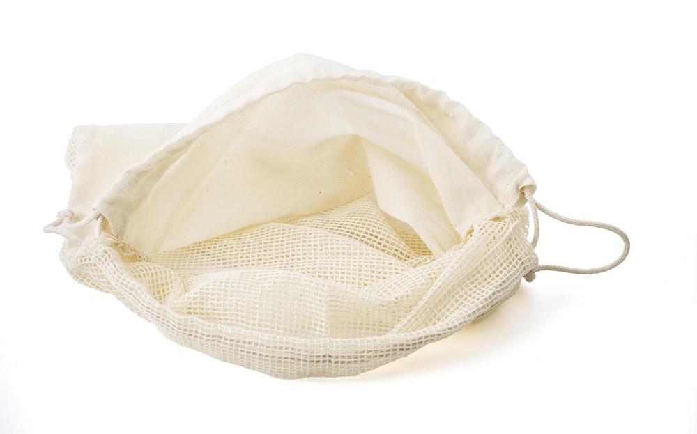 100% Organisch katoenen groente- en fruitzakje met net aan één zijde en een trekkoordsluiting.