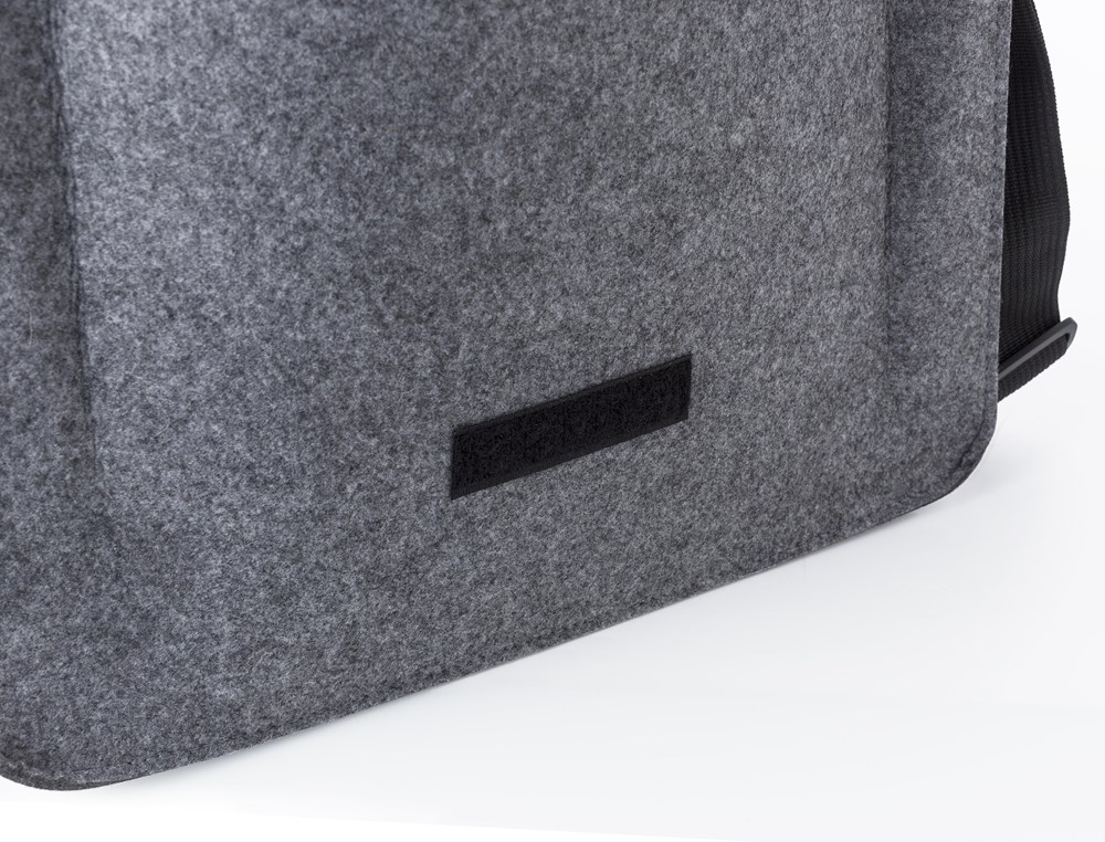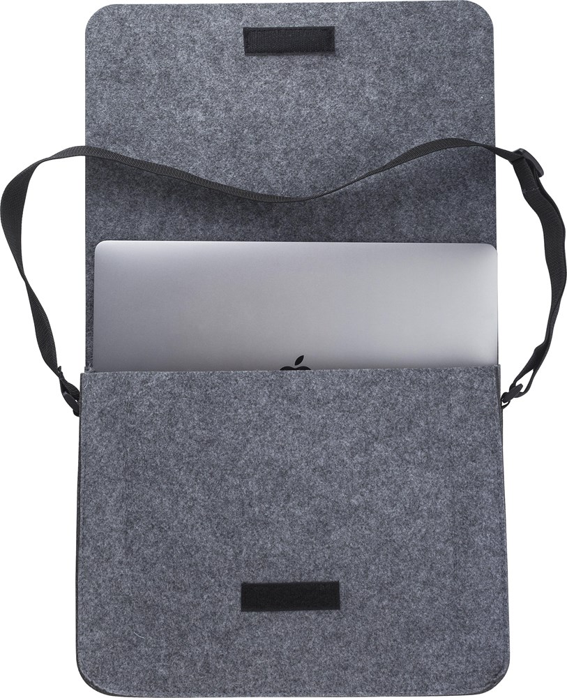rPET vilten laptoptas(15 inch) met klittenbandsluiting en verstelbare draagband.
