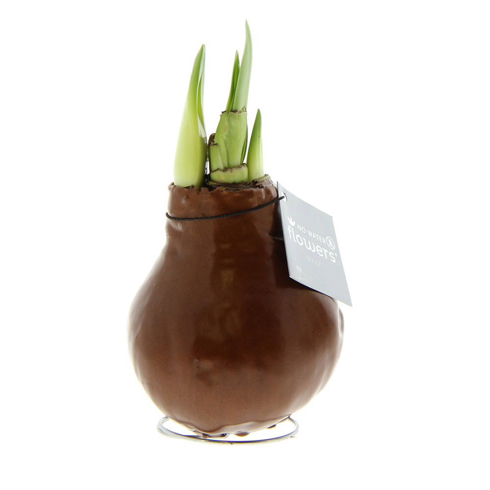 No Water Flowers® zijn een luxe, groeiend en bloeiend geschenk. De levende No Water Flowers® staan bekend om de unieke handgemaakte wax amaryllisbollen. Deze speciaal geselecteerde en geteste amaryllisbollen hebben genoeg energie om zonder water te groeien en te bloeien. Authentieke No Water Flowers® geven vrij korte bloemstelen, vallen niet om en bloeien gegarandeerd. Iedere No Water Flowers® wordt zorgvuldig schoongemaakt en tot in perfectie gewaxt. Dit geeft de bloembol een eigentijdse en modieuze uitstraling.