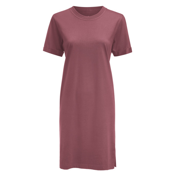 Casual chic, een American T-Shirt jurk, ontworpen voor een easygoing maar stijlvolle look. Gemaakt van 100% gekamd organisch katoen. Met een ronde halslijn en stijlvolle omgeslagen mouwen, biedt deze jurk een relaxe vibe die perfect is om elke dag te dragen. De split aan de linkerkant voegt een vleugje beweging en moderne flair toe.