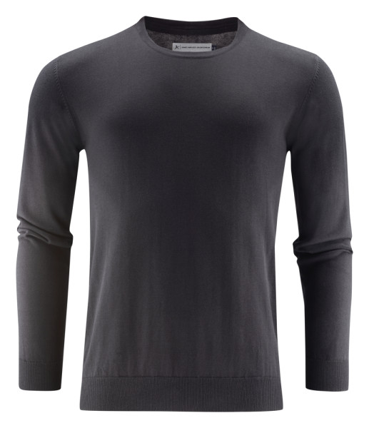 Gebreide sweater met ronde hals. 1x1 rib aan de halsuitsnijding, aan de zoom en aan de manchetten. Dubbelgevouwen, zachte rand aan de kraag.