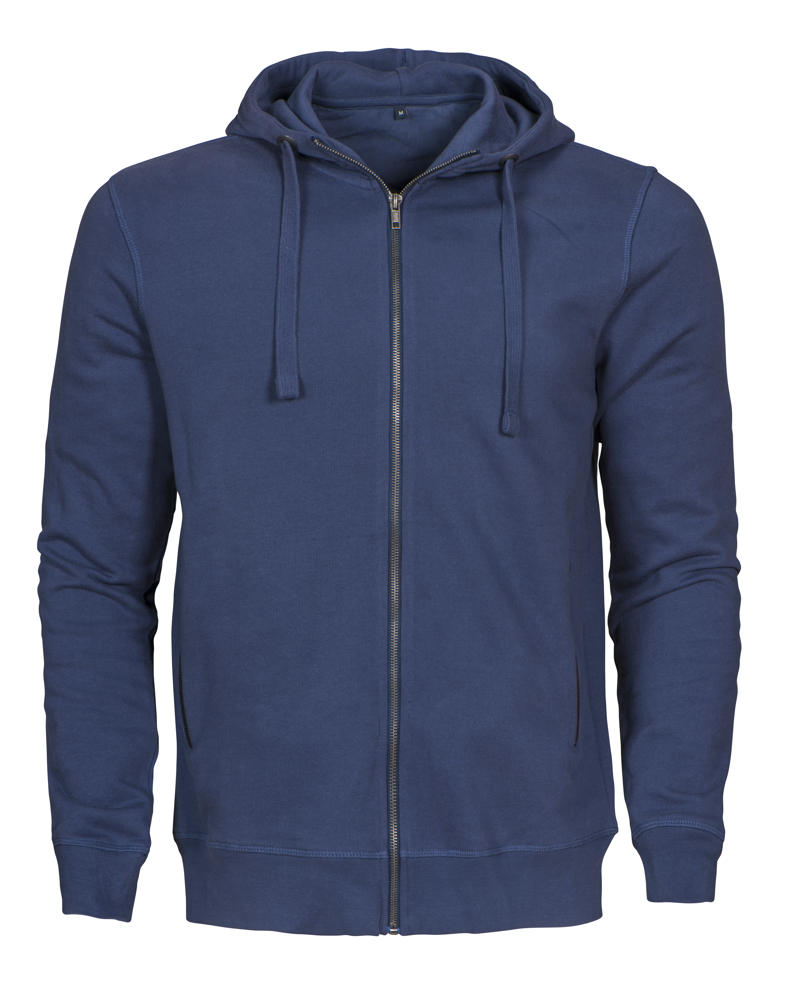 Sweatshirt met capuchon en metalen ritssluiting vooraan en aan de zakken. Plat trekkoord aan de capuchon. De stof is nabehandeld met een enzyme wash, waardoor het materiaal voorgekrompen is en zacht aanvoelt. Oeko-Tex 100 gecertificeerd.