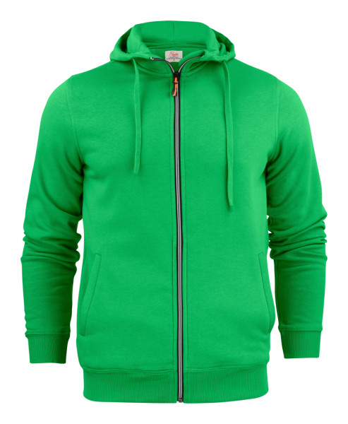 Sweatshirt met capuchon met tweekleurige ritssluiting vooraan en lichtgebogen steekzakken. De binnenzijde van de capuchon is single jersey. De zippullers kunnen indien gewenst vervangen worden door één van de andere beschikbare kleuren. Oeko-Tex 100 gecertificeerd.