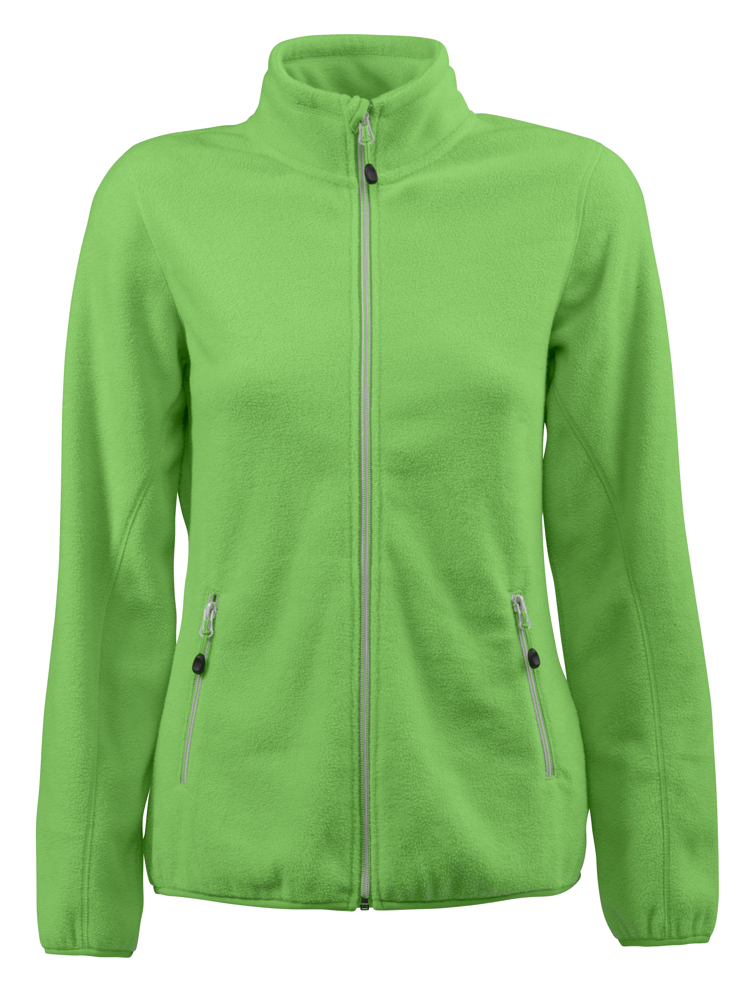 Geborstelde fleecejas met lange ritssluiting voor dames en heren. Geborsteld aan beide zijden. Twee voorzakken, contrasterende ritssluitingen en decoratieve stiksels op de mouwen. Elastische tape aan de boord onderaan en de manchetten.