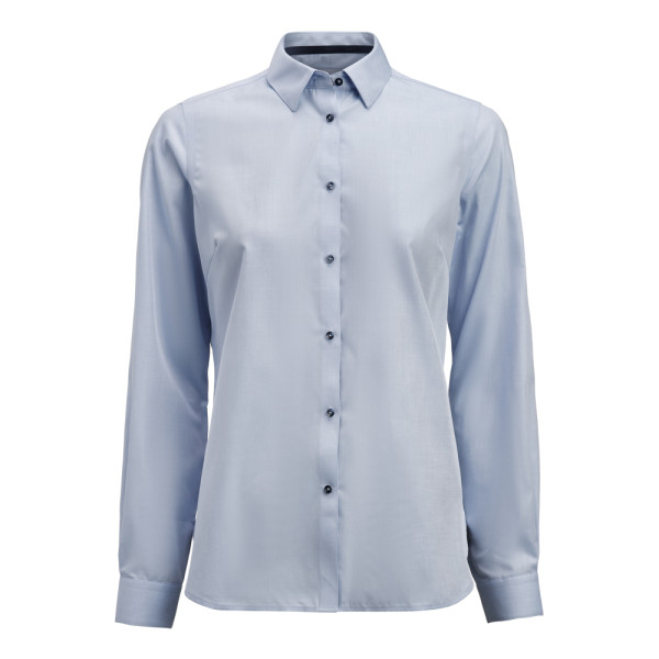 A high performance shirt that is made in a blended twill in preferred materials* with added Easy Care treatment and modern contrast details. It has a hidden button down collar and as always, J.Harvest & Frost business shirts comes with taped seams and split yoke.