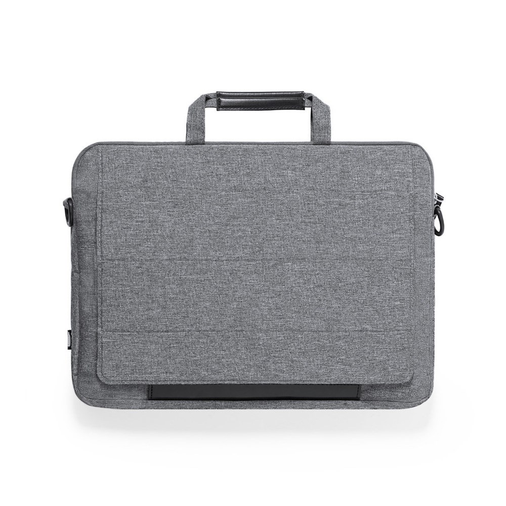 Documenthouder in natuurlijn en in resistent 300D RPET melange-effect, gemaakt van gerecycleerd plastic, om het hergebruik van plastic afval te bevorderen en bij te dragen tot de duurzaamheid van de planeet. Met innovatieve, geïntegreerde laptophouder. Hoofd- en voorvakken met ritssluiting. Binnenkant met gevoerd laptopvak voor laptops tot 15 inch en vak voor tablets tot 10 inch. Verstelbare schouderriem met versterkte draaggreep. Weerstand tot 6kg, met RPET embleem op buitenlabel.