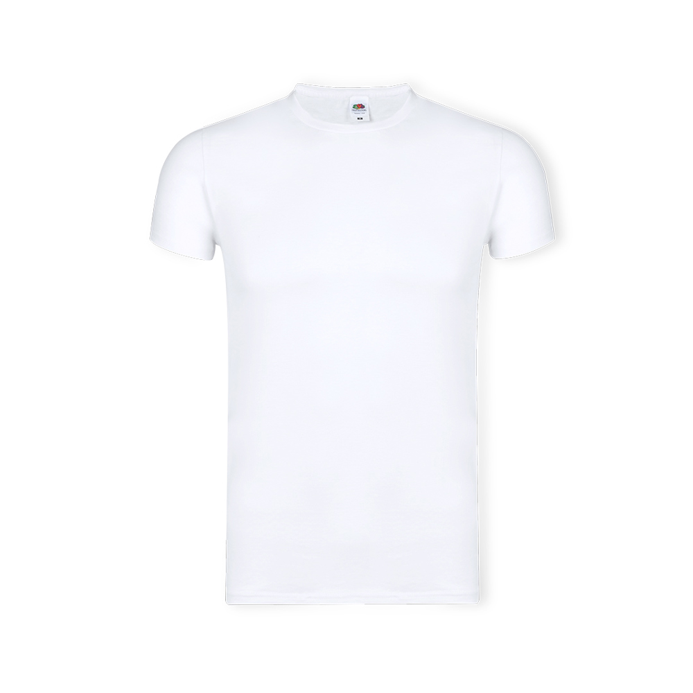Wit T-shirt Iconic voor volwassenen van Fruit Of The Loom. Gemaakt van 100% geruwde katoen Ring Spun 140g/m2. Zacht aanvoelende en moderne snit, met smalle 1x1 geribde ronde hals en bijpassende sluiting. Gemakkelijk verwijderbaar label en verkrijgbaar in de maten S, M, L, XL, XXL.