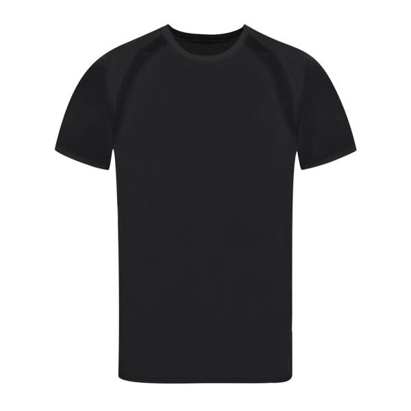 Technisch T-shirt voor volwassenen van 100% ademend polyester materiaal 135g/m2. Met raglanmouwen, ronde hals en banden aan de voorkant van ademende, micro-geperforeerde stof. Verkrijgbaar in de maten S, M, L, XL, XXL.