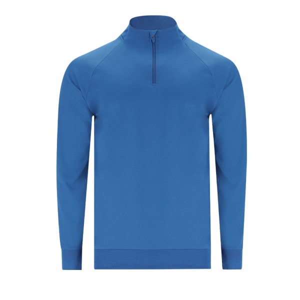 Sweater met een technische stof en een geborstelde binnenkant die warmte en zachtheid biedt. Met raglanmouwen en een hals met een halve rits en versterkte naden in dezelfde kleur. Het achterste deel van de hals, de manchetten en de onderkant zijn gemaakt van 1x1 rib voor een comfortabele pasvorm. Inclusief zijnaadsteken.