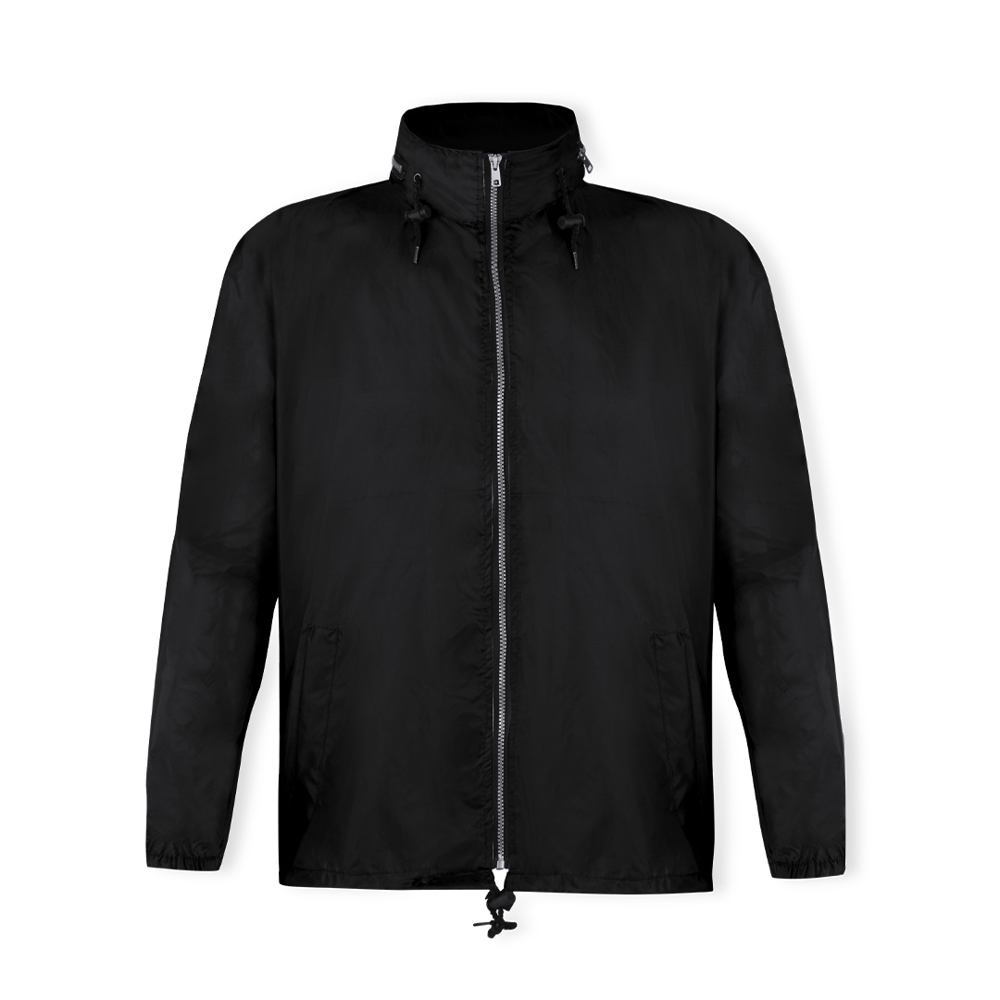 Regenjas in resistent polyester 190T. Capouchon met verstelveters, geïntegreerd in het ritsvak van de hals. Hoofdsluiting met rits, inclusief een heupkoord met verstelmogelijkheden. Verkrijgbaar in een groot aantal kleuren en in de maten M, L, XL, XXL.