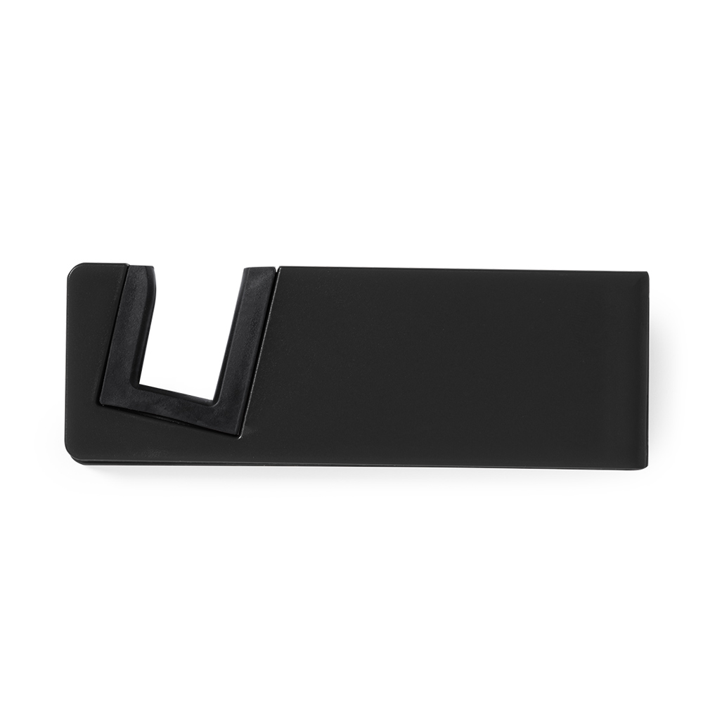 Houder voor mobiel apparaat met inklapbare poten en met PVC-antislipstoppen. In felle kleuren en speciaal ontworpen voor tampondruk.