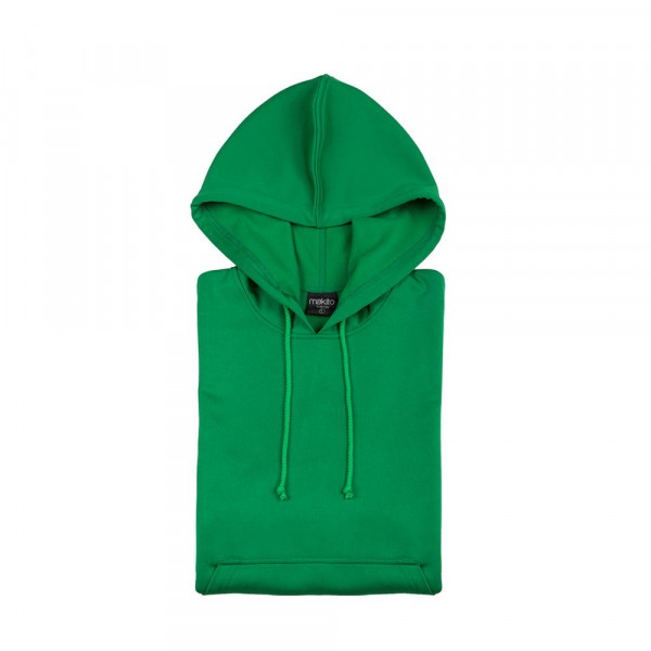 Unisex sweatshirt voor kinderen. Van100% polyester 265 g / m2. Met capuchon, verstelbare bandjes en voorvak. Verkrijgbaar in diverse kleuren. Maten 4-5, 6-8, 10-12