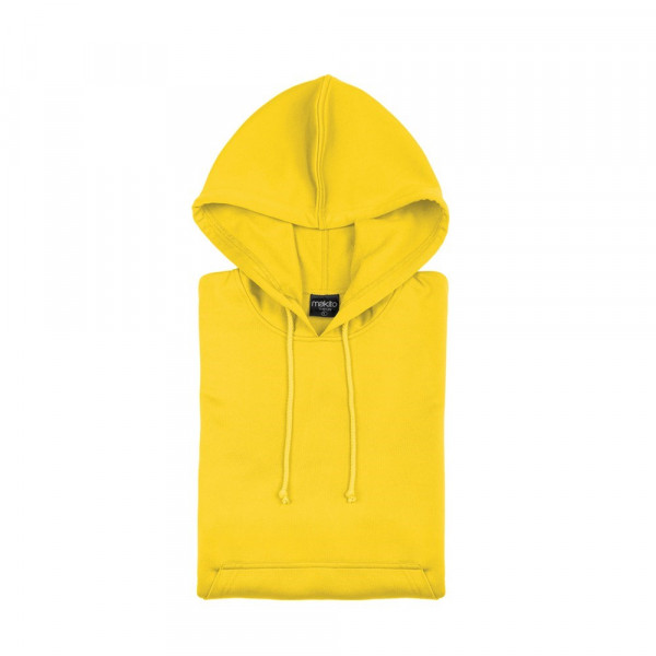 Unisex sweatshirt voor kinderen. Van100% polyester 265 g / m2. Met capuchon, verstelbare bandjes en voorvak. Verkrijgbaar in diverse kleuren. Maten 4-5, 6-8, 10-12